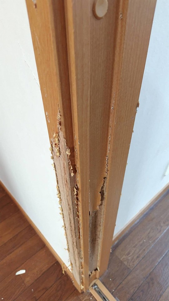 犬、うさぎ、ハムスターなど、かじった柱、かじられたドア、かじりあとの補修も同様に違和感少なく仕上げます。